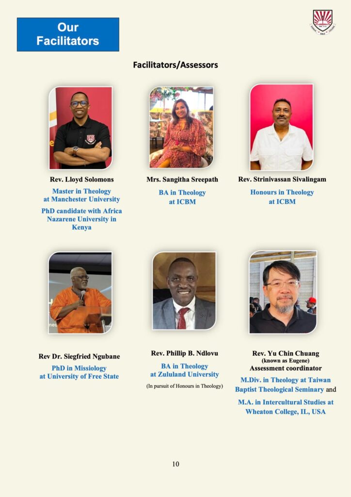 God has blessed DBC with a dedicated faculty and staff.  The facilitators have earned Honours or Masters or PhD degree; the principal is in pursuit of a Doctorate.  Our facilitators have been involved in church or mission work for many years. They have hands-on experience in church planting, missions, and pastoral work.  The faculty is diverse in several ways.  There are international and national facilitators as well as missionaries and national pastors.  At DBC you receive personal attention from your facilitators who take real interest in the life of each student.  Their offices are open to help the students in any way.